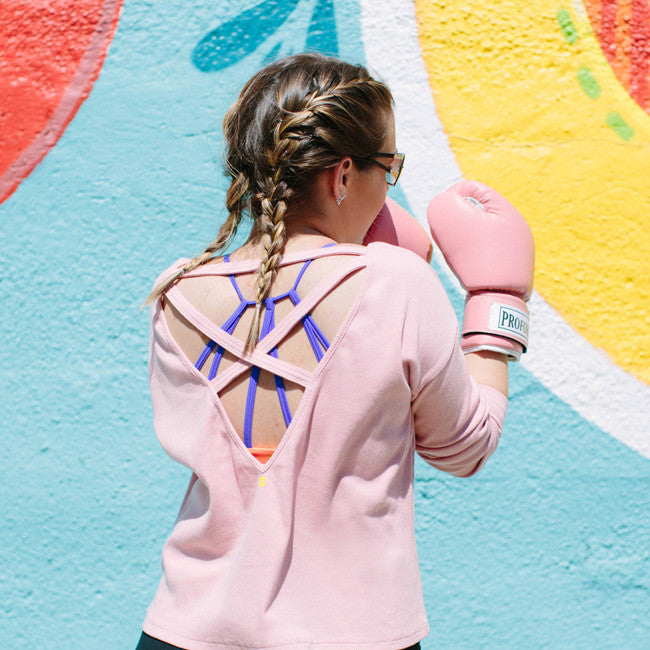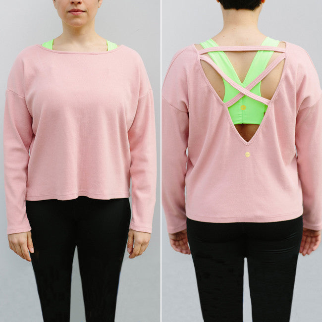 - Made with a soft yet heavier-weight ribbed jersey cotton fabric, this long sleeved tee with crisscross bands detailing its open back design shows that you mean business from the gym to the street.
